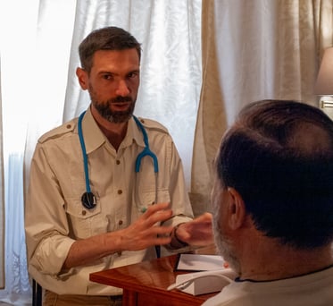 W ramach wizyt domowych zapewniam kompleksową opiekę lekarską w komfortowych warunkach dla pacjenta. Przeprowadzam dokładną rozmowę z pacjentem i rodziną, analizuję objawy. W razie potrzeby wykonuję szybkie testy diagnostyczne, a także badania USG jamy brzusznej i klatki piersiowej, co umożliwia natychmiastową ocenę stanu zdrowia. Omawiam również konieczność dodatkowych manipulacji lekarskich i pielęgniarskich, takich jak zmiana opatrunków, podanie kroplówek i iniekcji, aby zapewnić pacjentowi jak najlepszą opiekę na miejscu.